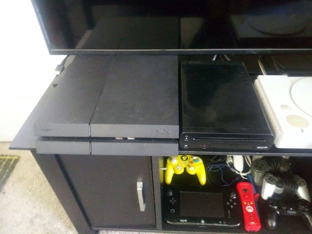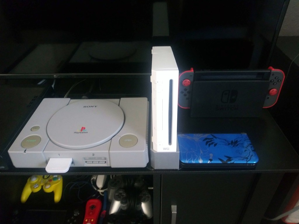 To my fellow otaku gamers, I have been away for a bit due to the busy, but tremendous start to this year as well. Do you remember the previous photo that I uploaded that showed my console collection? Truth be told, I was pretty unsatisfied with the way they looked, and how i took the photos. Dust was everywhere, the quality was off-putting, taken at the wrong time, and I definitely didn’t enjoy the position they were in. So, I decided to retake the photos again. Since I had to clean house and clean up the areas where my consoles since they take up the most dust, I decided to retake them at the right time. So far, they are in a much better position, and the photos look a lot better. Not only did I make them easier to access and play, but I also put them in a much safer position. While, at the same time, making them look tidier and without to go through the hassle of having consoles and controllers everywhere.