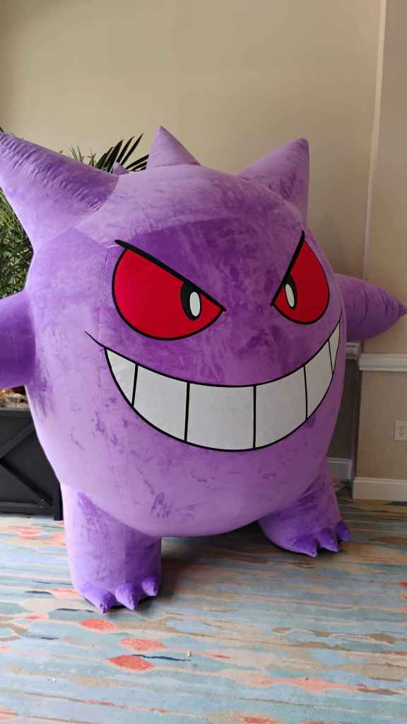 Prior to entering OG Con’s vendor room, I encountered a wild Gengar! Haha, get it? I encountered this very big Gengar that looked SO adorable that I had to take a picture of it twice and record it as well. As you all know, Gengar is one of my favorite Pokémon of all time. Second favorite of all time, second only to Umbreon. Gengar is cool, funny, adorable, and excellent in battle. Has a mega evolution, and a Dynamax form. I also own a mega Gengar plush, which I have showed many times. Seeing a giant Gengar was just amazing stuff…