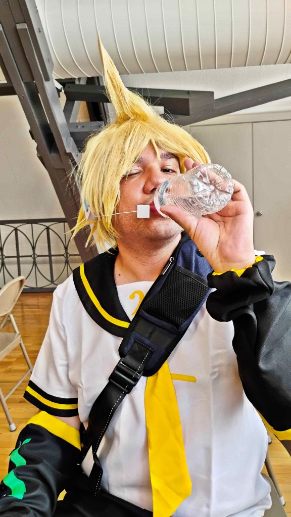 As I spent some time looking around, it got a little hot for me, and, because Florida is Florida, and despite being December, the weather was pretty hot, and I could feel the typical Florida Humid. To make the matters worse, I got thirsty, and the heat itself did NOT help me with the situation. Like all cosplay, the sweat was starting to consume me, but, it wasn’t as bad as my custom casual Deku cosplay that happened at Hibachi Samurai & Ramen, and Ocala Comic Con. Nonetheless, the temperature was still unfavorable… On the bright side, I guess that was a good thing, because that meant Len was perfectly usable for this type of weather. Now, for my favorite part…