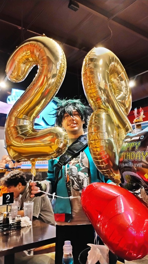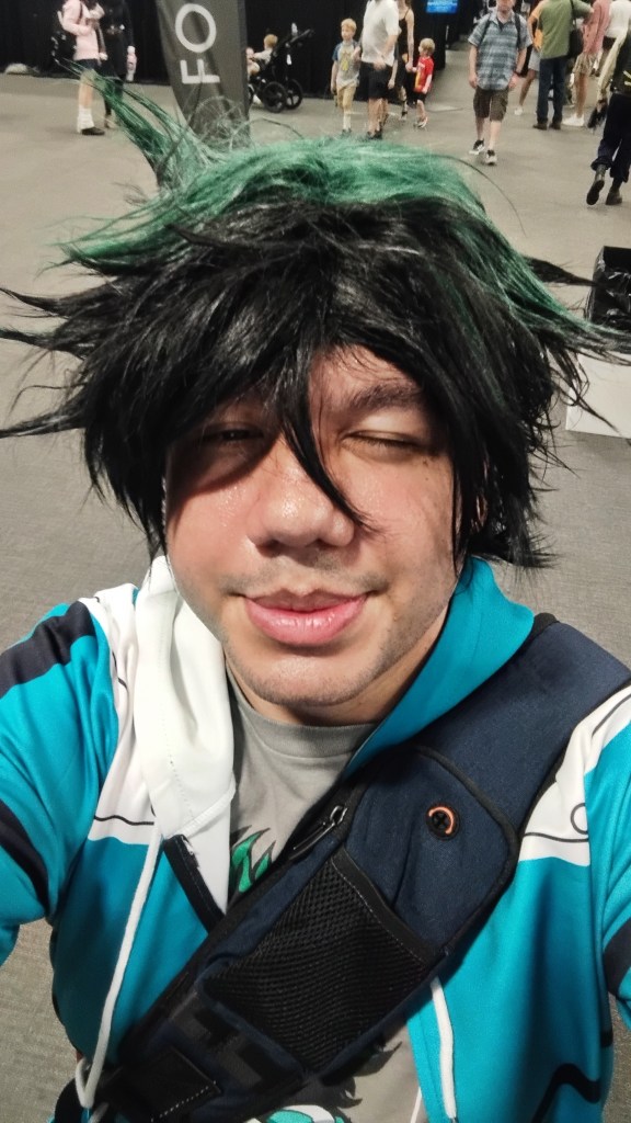 Then my birthday rolled around. I celebrated at Samurai Hibachi & Ramen, and that’s when the brilliance of cosplay was finally unleashed! My first choice wasn’t the usual pick most people go for—I aimed for a “closet Deku” cosplay that blended elements of Izuku Midoriya’s everyday outfit with his hero costume, complete with wig and shoes. I wouldn’t exactly call it a full-on closet cosplay, but it was super close—almost identical in spirit. It mixed daily-wear vibes with fun cosplay elements for something totally unique.
